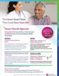 For Discounted Coronary Artery Calcium Scans, call (215) 487-4537 | For Free Peripheral Arterial Disease (PAD) Screenings, call (610) 290-4270.